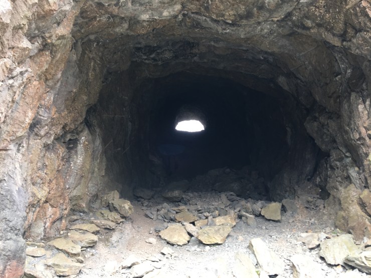 We climbed through gaps which boulders had formed almost getting stuck. We accented through a tunnel left from the mining days and entered the ruins of all the mining buildings.