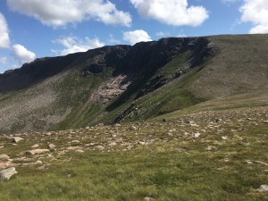 Our daughter had just reached the ski centre where we had parked and she was sat out of the sun enjoying an ice cream. We had two routes laid out in front of us. One route took us up across to a clear footpath, the other scrambling directly off the side to meet the footpath further down, cutting a good mile off the walk. I decided to go directly off the side and we very quickly found ourselves on a scree slope, slipping and sliding across the gravelly slope. Unable to grip or get hold of anything secure all we could do was laugh it off and slide. A Challenging route, but it still proved to take less time then the alternative, more boring route.